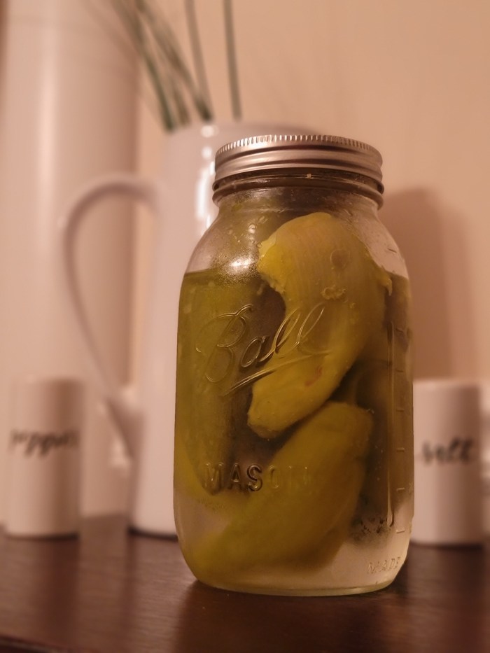 We got this recipe from one of our neighbors after we had them at a pot luck supper. Very simple and quick to make! We frequently share this recipe based on how much people enjoy these pickles.